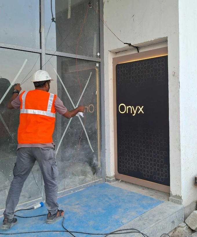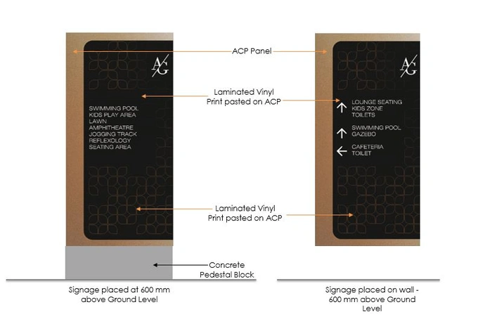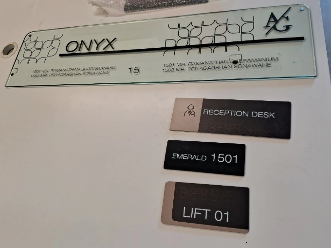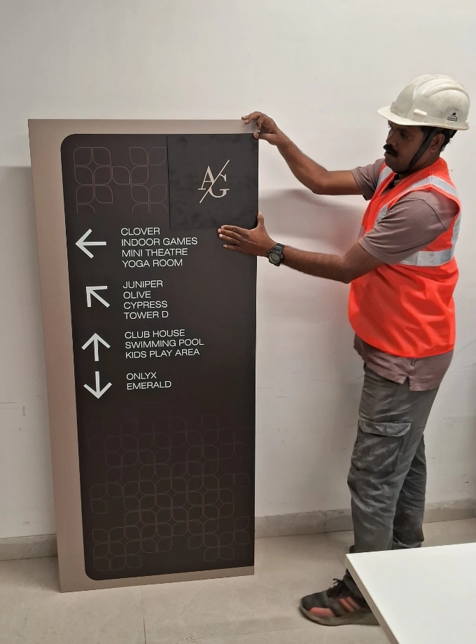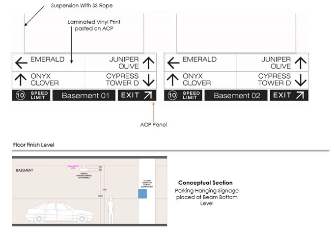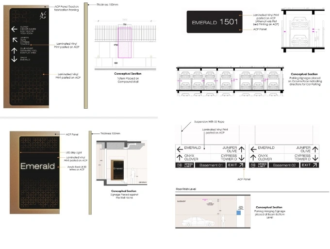 Most of them had custom patterns and forms as per the project’s unique marketing story. But some others, like the totems, had striking totem elements for added visibility too. Later on, we also added intuitive parking guides and elegant floor makers on the residential floors as per the brand’s already international and premium voice. So yes, the signage design project did finally feel strong, lasting and truly reflective of our client, Adani Developers.