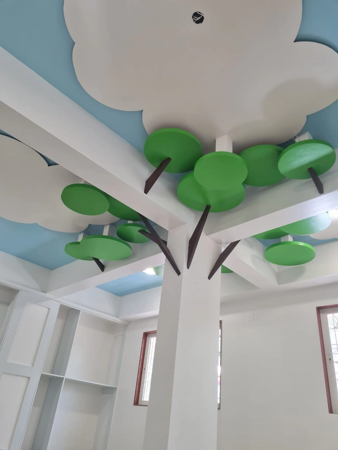 So, our very idea was to create a vibrant, whimsical and comforting space from the very beginning. We wanted every corner to have a child-centric layout with flexible, transformable and innovative story-telling elements. Even the preschool classroom furniture was a part of the play; it was equally interactive, safe and inviting. And look up, and you’ll see a classic tree-style abstract ceiling design for a dynamic, colorful effect.