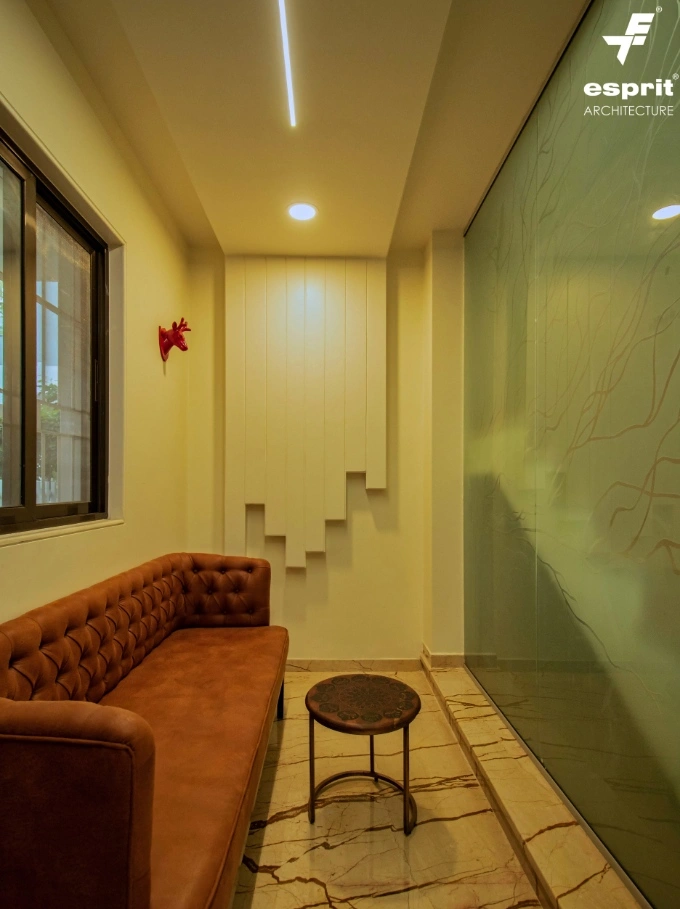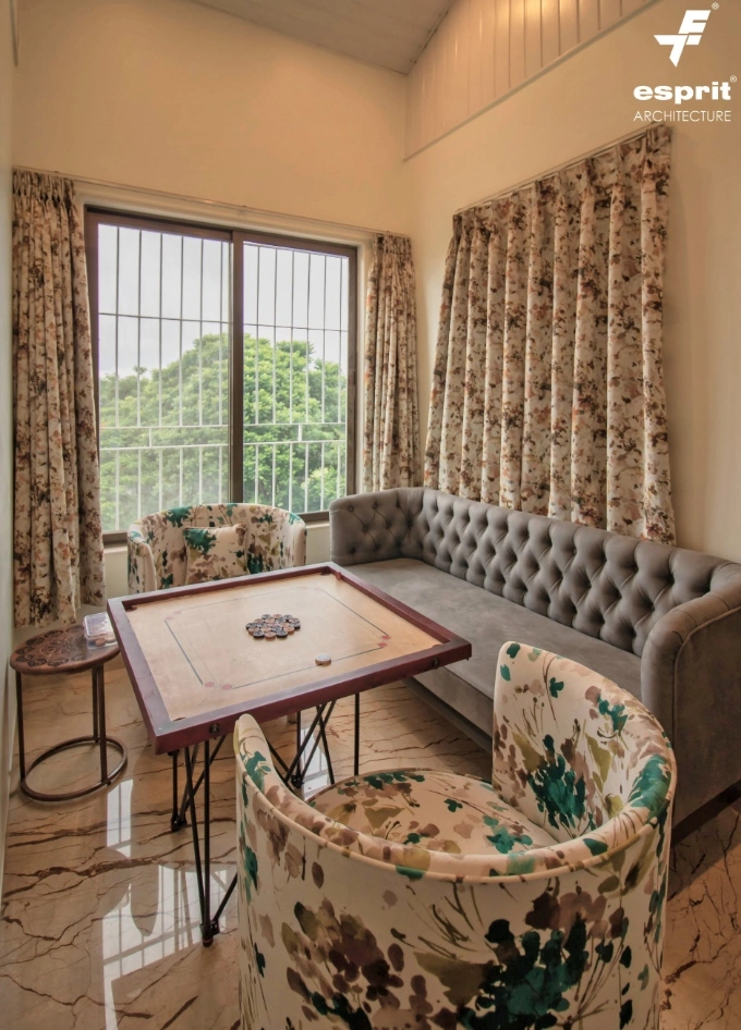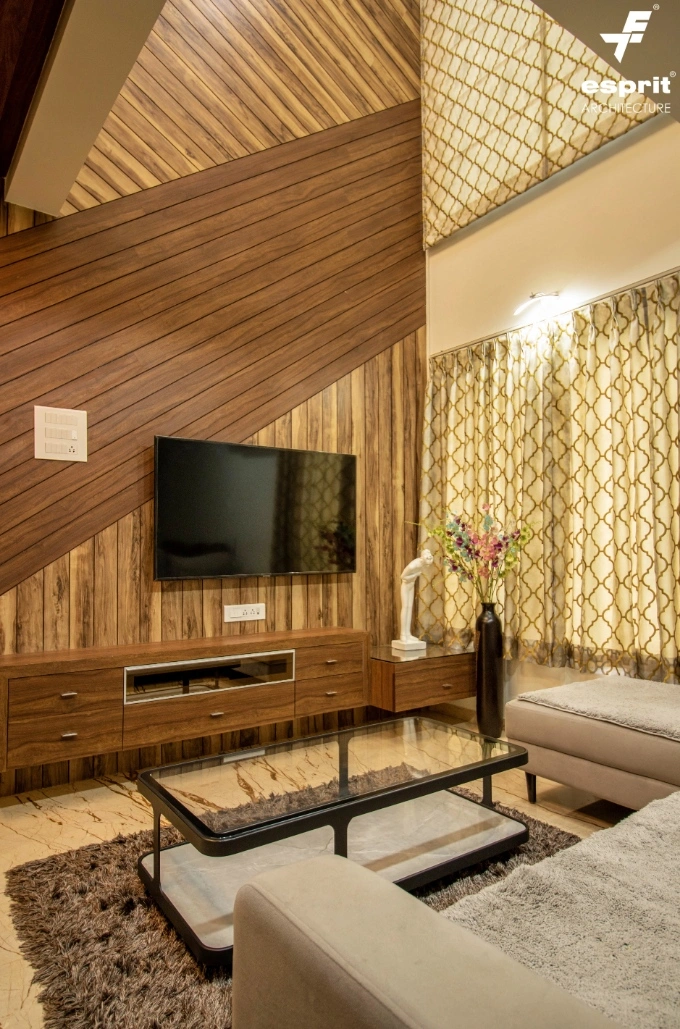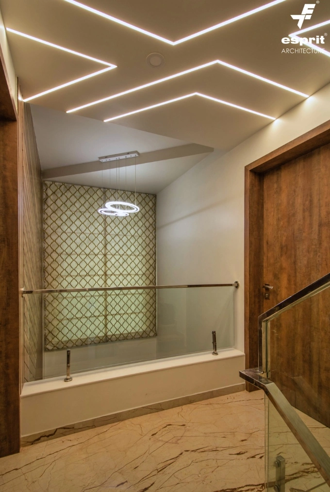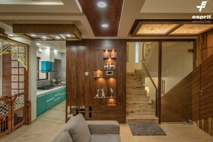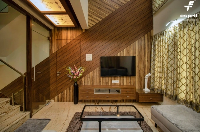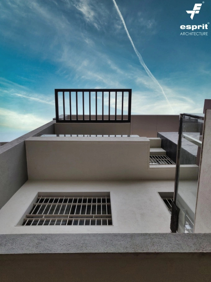 So, when we started designing the Nashik House, our goal was simple. We just wanted to create a modern bungalow design that reflected our client’s personality, background and passion for materials. Thus, we had the opportunity to play with different textures and finishes, both for the interior and exterior, to highlight each space. Yes, the plot wasn’t huge; So, we paid extra attention to detail. Like, every nook, every level in this bungalow interior design was utilized to expand space, while still maintaining warmth & a seamless flow. So, for us at Esprit architecture, the Nashik House isn’t just about being one of the best bungalow design out there; it’s about crafting a home that celebrates innovation, materiality, and the people who make it come alive.