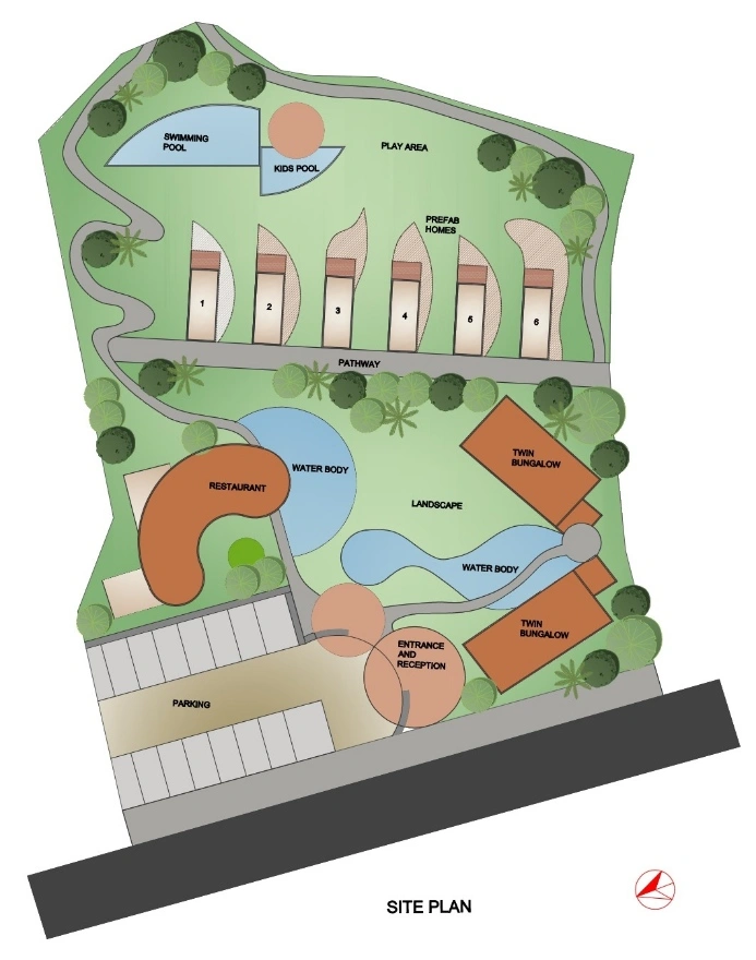 So, our vision was to poetically create a space that listens to the land, embraces the rhythm of the coast and moves along the warm local culture. And for that, we went with a sustainable design approach as per the lands natural contours, cultural heritage and village life.