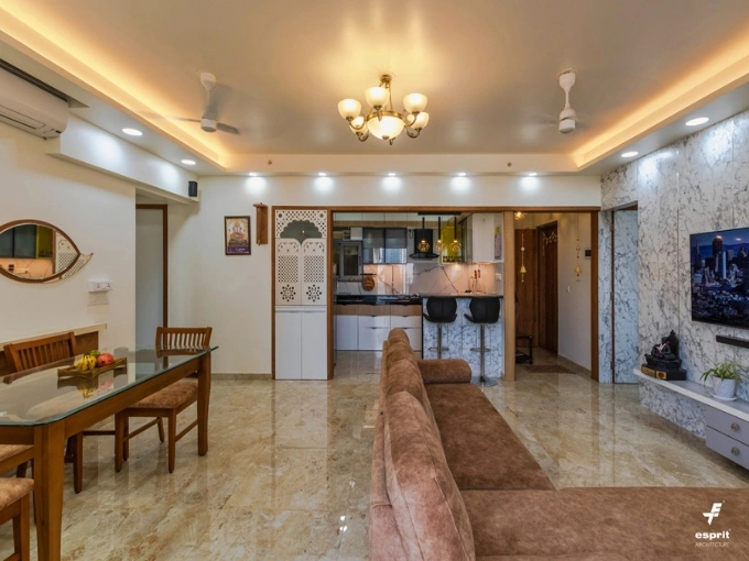 Amanora Park Township projects are always special to us. And this time it was a special interior design for a renowned, self-made industrialist who had this deep love for Maharashtrian culture. So, we knew from the very beginning that this project was much more than an interior designed apartment. In fact, it was about heritage, say an eclectic mix of patterns, colors, and materials back from the vintage charm. You know, the Esprit team also suggested using a custom-designed l-shape sofa here. And this element eventually created more family space, brought everyone together and created that homely vibe Maharashtra boasts off! You know, we did learn a lot from this project. Like, every apartment interior doesn’t need luxury. For us (as one of the leading architects in Pune), it’s the client’s journey, tradition and daily flow that matters more.